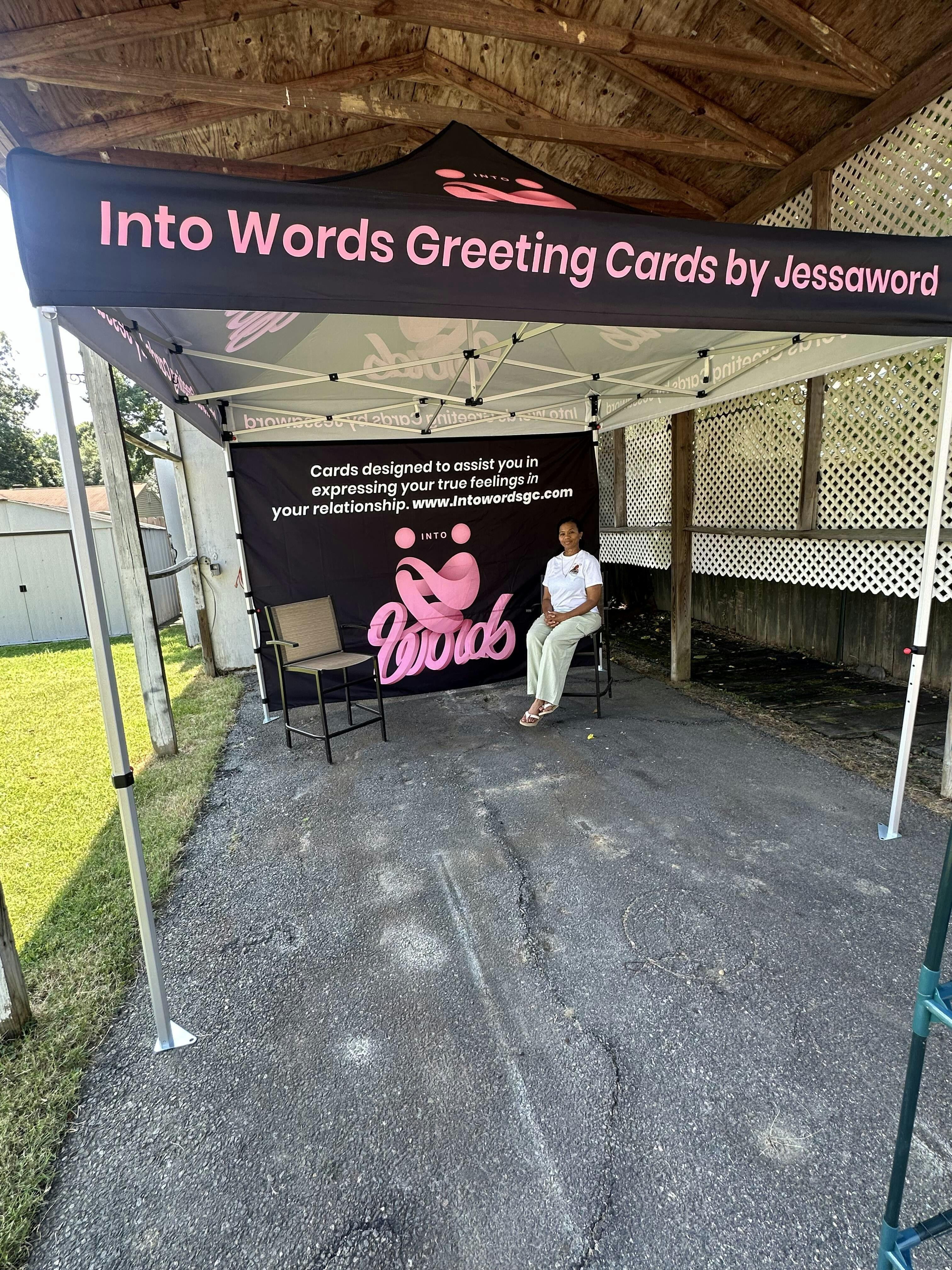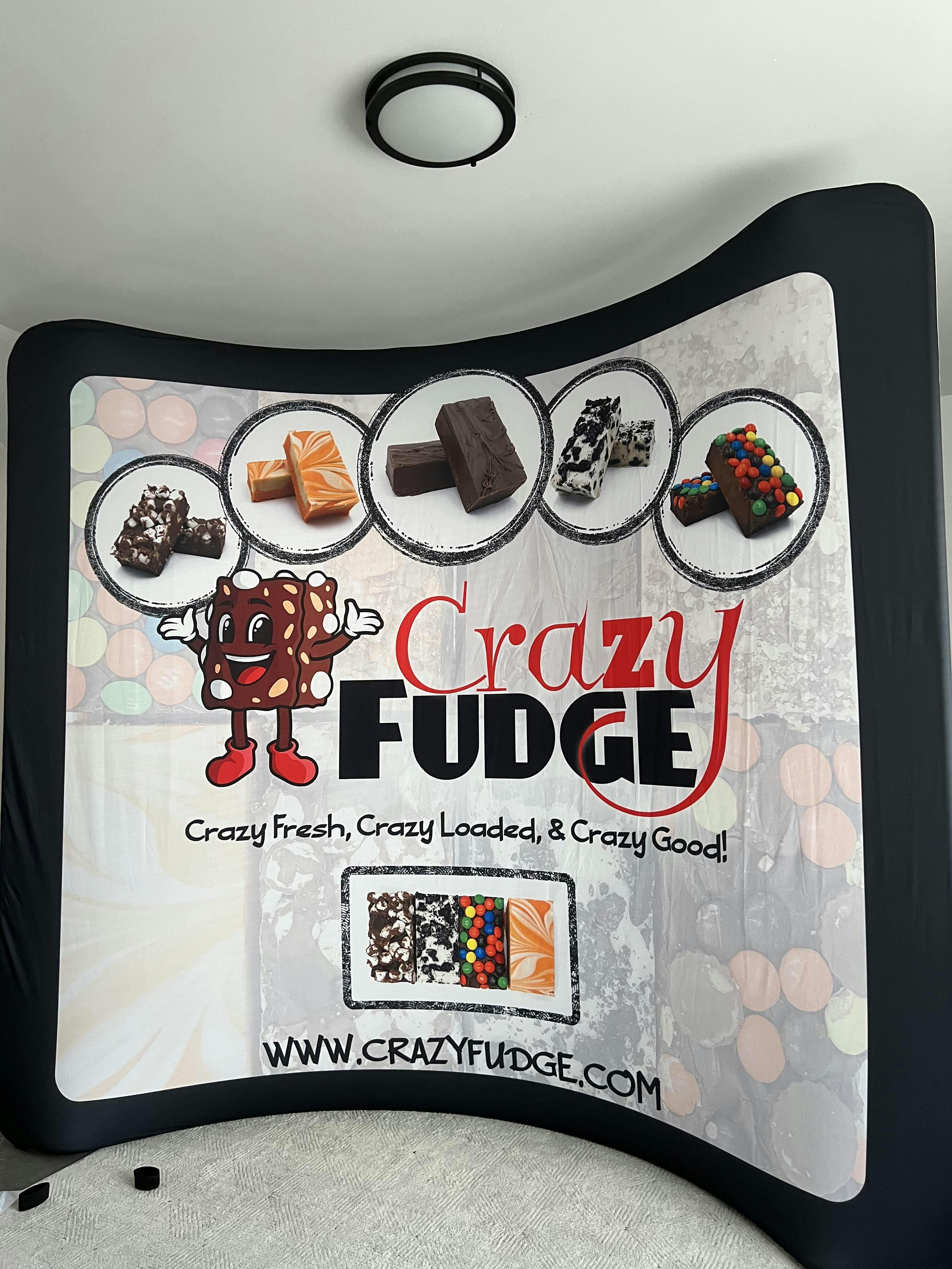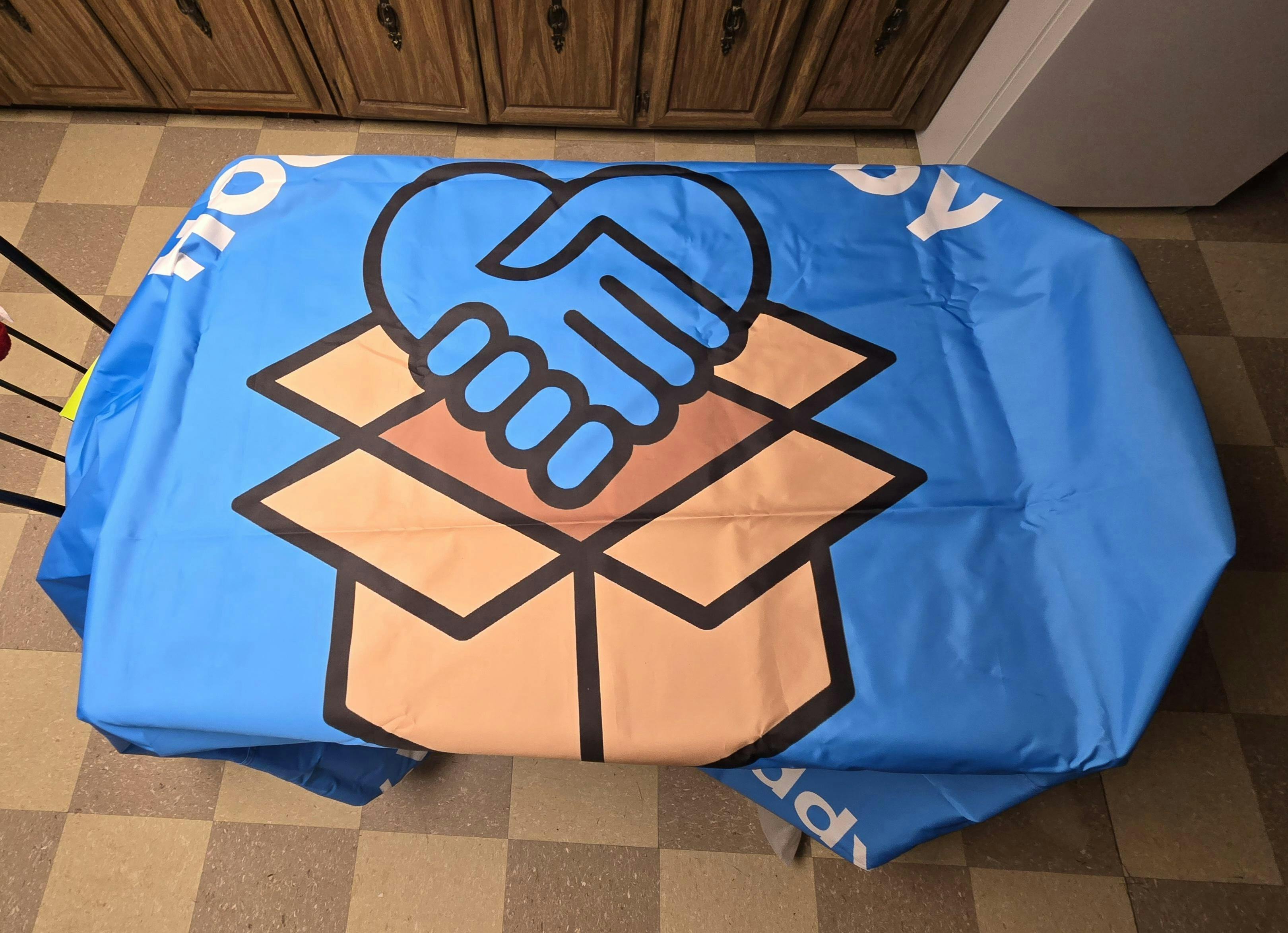 We purchased a 10 by 10 tent w logo and printing on the top. And a printed table cover