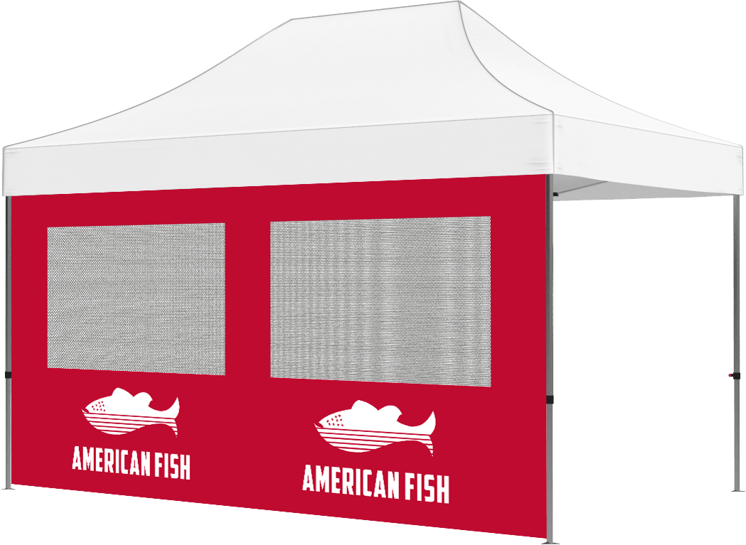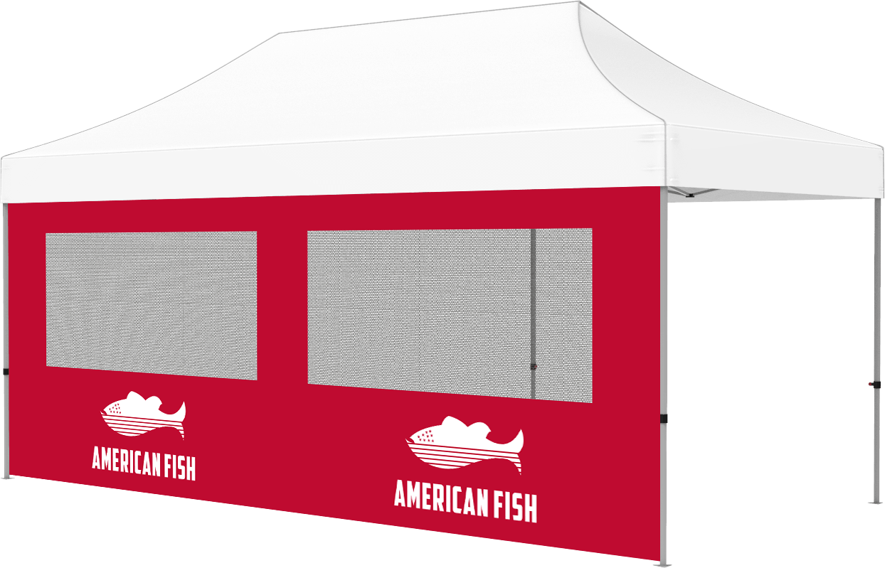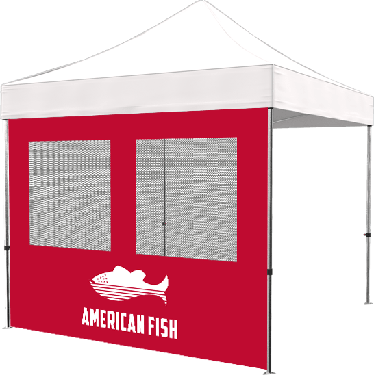 All our full walls come with Velcro on the top edge (both front and back sides), so you can easily attach them to your canopy tops. On the fabric, you can print a design to match your tent top. You can choose single-sided or double-sided print. As the Velcro is sewn on both the front and back sides, You can choose single-sided or double-sided.