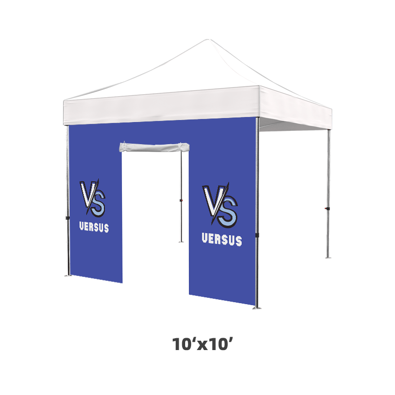 We purchased a 10 by 10 tent w logo and printing on the top. And a printed table cover